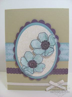 Wow these colors can make a very pretty card. I don’t often think of using River Rock as a neutral but it works. Here is what I created.