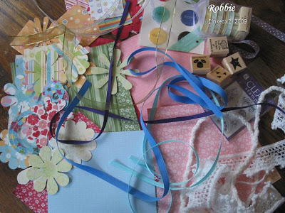 It includes some 6 x 6 patterned paper, ribbon, lace, stamps, paper embellishments, and some metal embellishments. To be eligible post a comment to this blog by Monday August 10 at 9:00 p.m. Only participants in the United States and Canada will be considered due to postage costs.