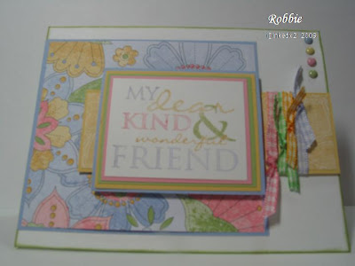I also made 2 cards one for today and one for later this week. Today’s card uses the sketch from Splitcoast Stampers for last Wednesday. I wanted to make a card where the sentiment was the main focus of the card rather than an image. I combined it with the Tea Party DS paper. Here is the sketch and my creation.