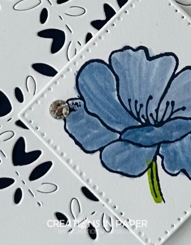 - add the die cut flower to the lower right hand corner of the card base