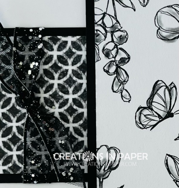 Hello Everyone – today’s black and white card uses the new Stampin’ Up Perfectly Penciled Pattern Paper.