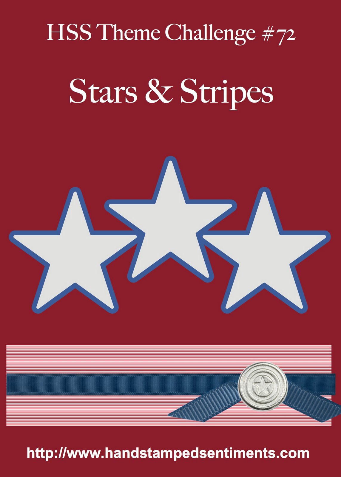 Hope you liked my card and banner. Head on over to the Hand Stamped Sentiments blog to see the challenge as well as the other design team members samples. Then why don’t you play with us this week and create a card for the 4th of July. Thanks for looking and have a Terrific Tuesday!