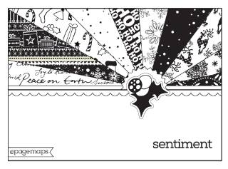 I pulled in a blue metallic paper to make the scallop border below the sunburst. I think that cute snowman is perfect for the snow pattern paper don’t you? I sprinkled some mini snowflake gems on the card front to emphasize the theme.