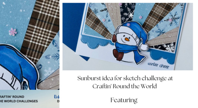 Did you like this technique? It is a great way to highlight an image like the snowman on the Sunburst idea for sketch challenge at Craftin’ Round the World.