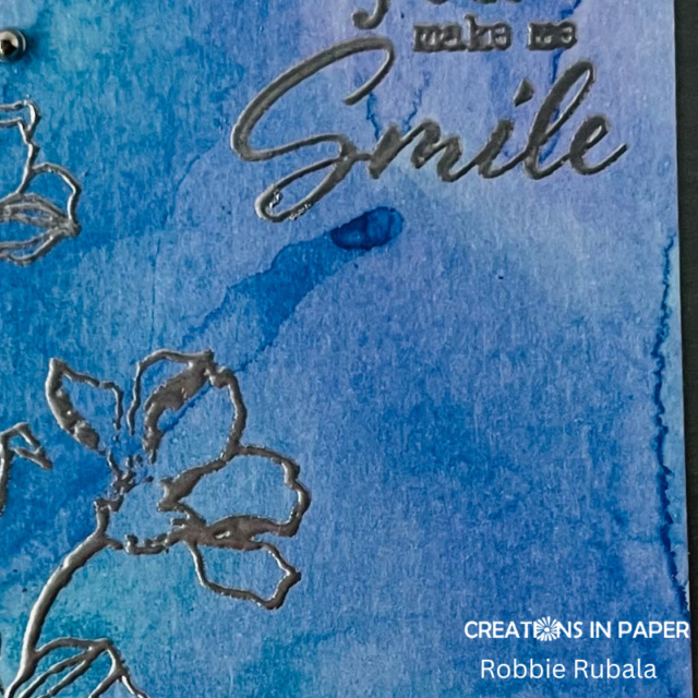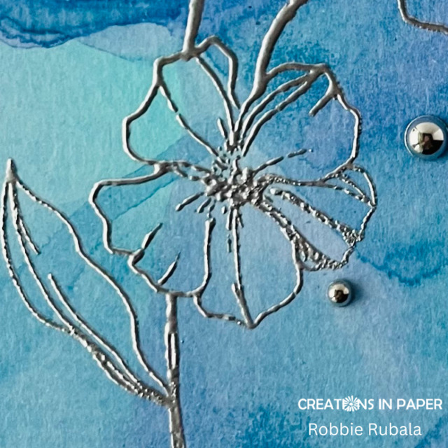 I chose a flower image and sentiment to emboss with silver. To finish it off I added some silver gems.