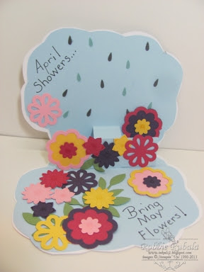 I thought it would be fun to create a card shaped like a cloud and on the inside do a pop up with flowers. Since I chose a simple shape I created my own template. Here is what I created.