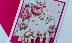 Craftin’ Round the World November sketch Hello everyone – a pink Christmas card was my make for the Craftin’ Round the World November sketch challenge. I was drawn to the sketch challenge this month so I went looking at my stash to see what I had. I pulled out the Uniquely Creative Christmas Wishes card kit and found some paper and ephemera. Today’s Project When I saw this layout I could not find any ephemera…