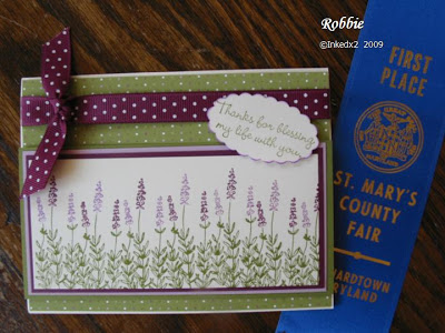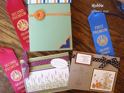 You can see in the picture I got 2 second places and 1 first place. I think the card that was entered in both fairs did not do as well in the Calvert Fair because I had used patterned paper on the background (just a guess since I didn’t get any feedback).