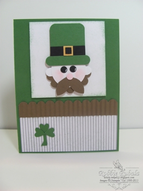 My card today is the last card for my workshop this week. I knew I should have a St. Patrick’s Day card so I was not sure what I was going to do. Then I remembered the punched Leprechaun I had done for my Spring banner. I decided to use that idea and create a card. Here is what I created.