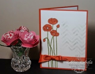Poppies come in several colors – our CA poppies are a very bright orange – next door neighbor has them in his yard and of course the seeds spread to our yard! Your friend will love the card. Sadly I did not get this stamp but do have my Chevron background stamp…being a hobby demo, I can keep anything that I love – and I DO!!!!! WONDERFUL design! Hope your yard sale helped you!