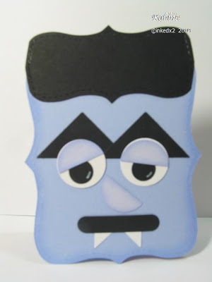 Wait until you see the card today! I have to admit this is not my idea. I cased this idea from Gretchen Barron. She has posted on her blog a set of favor bags that are just too cute. I loved Dracula so I decided to make him as a card for my October workshop. Here is my card based on Gretchen’s favor bags.