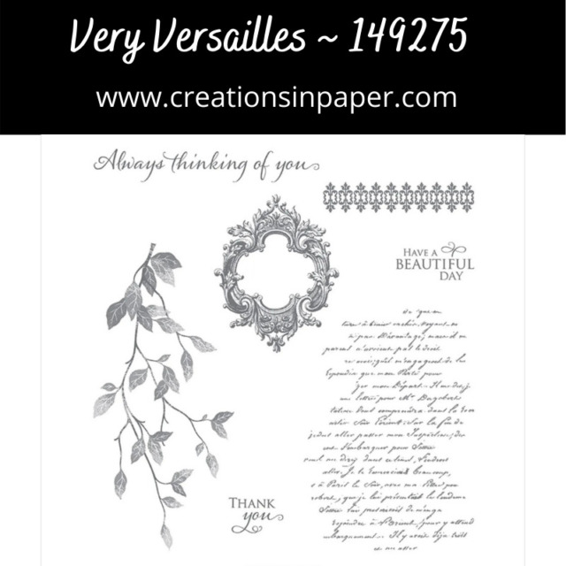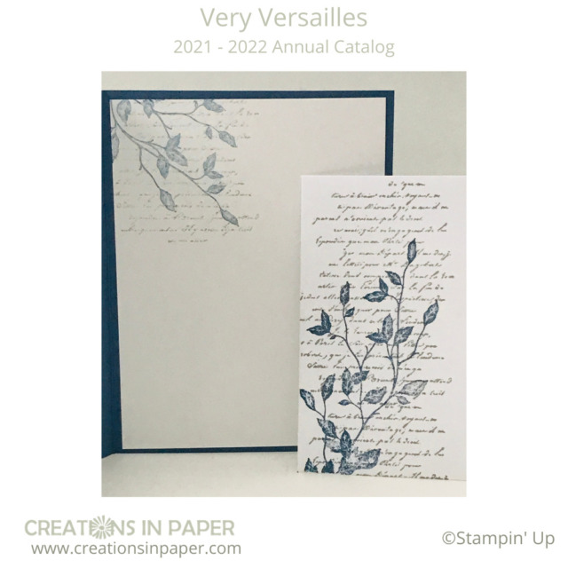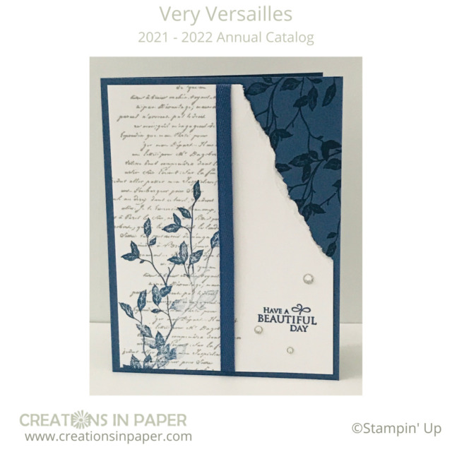 Since I was tearing off a corner of my card panel I knew I wanted to add something to the exposed corner. I chose to use the image from Very Versailles to tie the card together. You can also add a sentiment there if you don’t want to add your sentiment to the card panel.