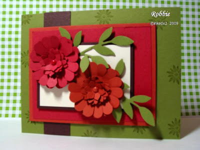 When I saw the color combination at Late Night Stampers, the first thing came to mind was chrysanthemums. I decided I wanted to give it a try so I pulled out my punches and gave it a try. Make sure you let me know what you think.
