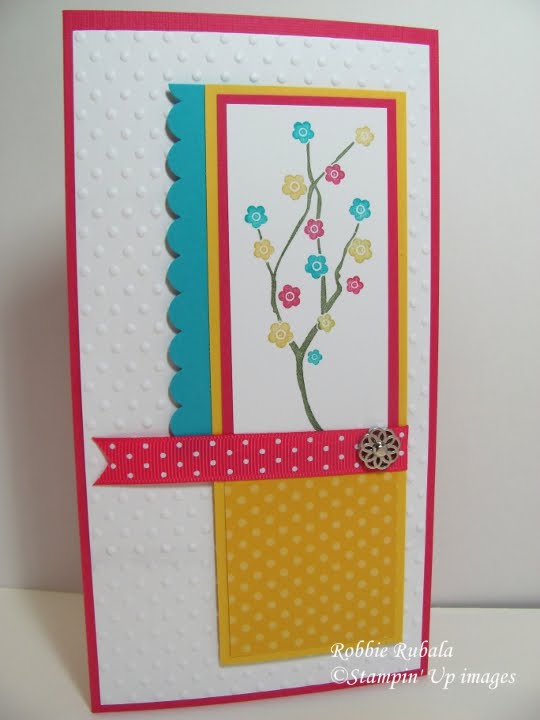 Beautiful, bright, fun card. I love the size it is fun to change it up sometimes. Great job as usual, thanks so much for playing along!