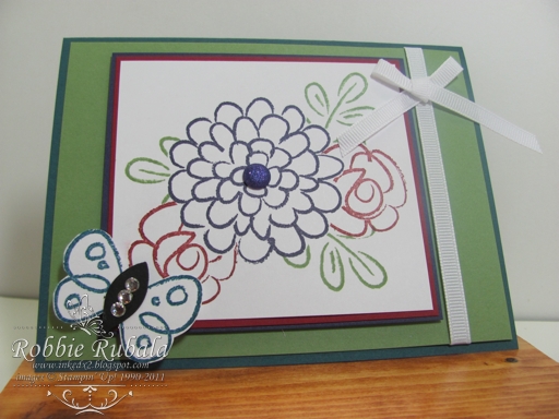 I used some rhinestones, a glitter brad, and ribbon as my 3 embellishments. I also used the new set in the Summer mini Flower Fest. Hope you liked my card today. Thanks for looking and have a Marvelous Monday!