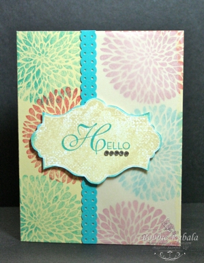 When I saw this I wanted thought about stamping an image all over the card base and then covering one side with vellum. I decided to go with that idea. Here is what I created using this sketch.