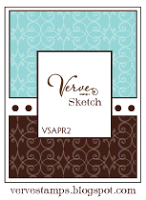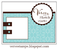 Each month stamp companies release new sets of stamps. One stamp company that I have several of their sets has a release on Friday night. Verve Stamps will release their new sets as well as several single stamps. As part of their release week (the week before the actual release of the stamps) they are having a contest. They have created 3 sketches and 1 color challenge and have challenged their readers to participate. I decided it would be fun to create a sketch set using the colors and sketches. Here are my creations.