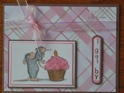 Stamps: House Mouse (could not find the name on the website) Paper: Close to Cocoa, Pretty in Pink, white, DCWV Spring Stack PP (last year) Ink: Close to Cocoa Accessories: ribbon (Pink Hedgehog), Word Window punch, dimensionals, sticky tape