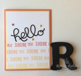 I had never tried this but it was a lot of fun! I kept my card simple and used a ombre type look using different shades of yellow and coral for the words. I put the words on a blog and inked them up with So Saffron. I stamped it along the bottom reinking each time I stamped. I cleaned the stamps and then used Daffodil Delight for the next row. After cleaning the stamps I repeated using Peekaboo Peach. The last row was Calypso Coral. The key here is to stamp the first row and when you go to stamp the next row to stagger the block so the words are not in the same place. It is easy if your stamps are photopolymer. After I had my clustering completed I cut out the hello using Basic Black card stock and attached it to my card panel using multipurpose glue. To finish off the card I added some candy dots in the colors of the inks. Here is my completed card.