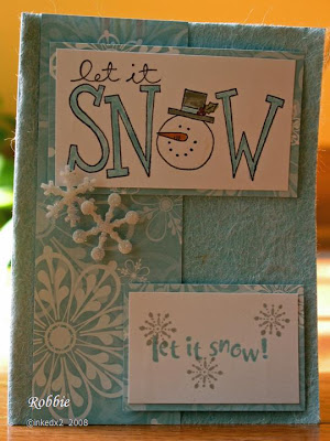 I have been saving used dryer sheets for a while as I remember seeing a post with them. I decided to use one of the sheets as a background for a snow card. They are readily available as we all use them. To attach them to the card I used glue but found that my card warped. I know they can be attached using mono but it takes a lot. If anyone has attached them another way, please let me know as I would love to be able to use up my dryer sheets in a variety of ways.